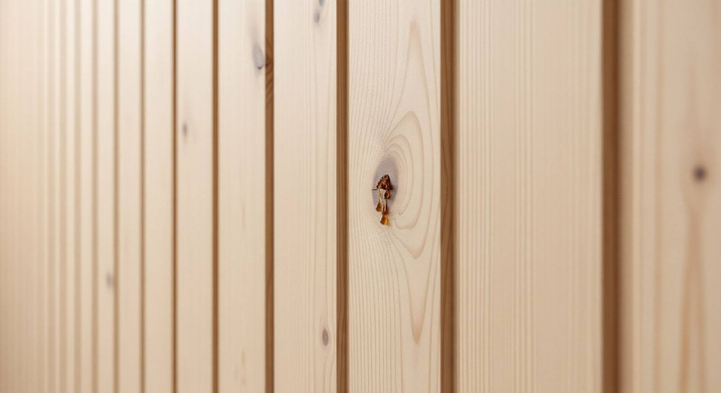 Перед началом обработки нужно внимательно осмотреть вагонку. Смолистые участки обычно видны невооруженным глазом — это тёмные, блестящие или липкие пятна, чаще всего расположенные возле сучков или на торцевых частях досок.