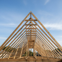 Элемент, замыкающий пару стропил в жесткий треугольник. Горизонтальная балка, соединяющая нижние концы стропил, предотвращает их разъезд под нагрузкой и тем самым снимает боковое давление со стен. Если затяжка располагается выше — ее называют ригелем, и она одновременно усиливает конструкцию, не давая стропилам прогибаться.